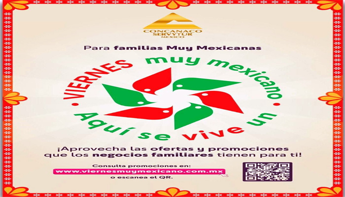 El presidente de la Canaco-Servytur, Fernando Reyes Muñoz refirió que el programa “Viernes Muy Mexicano” se perfila para convertirse en un referente de unidad, identidad y orgullo por lo hecho en México, por lo que desde el pasado 4 de septiembre se ha habilitado de manera gratuita el registro gratuito en la página www.viernesmuymexicano.com.mx