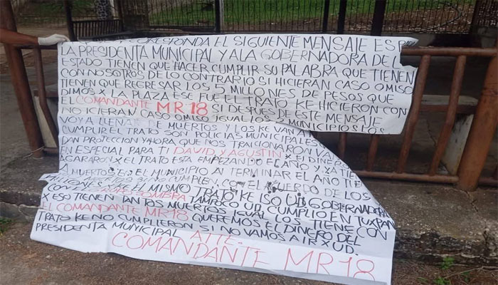 El mensaje está firmado por la M18, identificada comúnmente como Barrio 18, una pandilla trasnacional con origen en Los Ángeles en la década de 1960 y expansión posterior en Centroamérica tras procesos de deportación masiva en los años noventa.