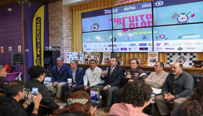 A la conferencia de prensa se dieron cita Giussepe Consuelo, presidente del Club de Autos Antiguos y Clásicos de Toluca; Alejandro Naime, delegado de la Scudería Hermanos Rodríguez; y Eduardo Acra, representante de la familia Acra, una de las fundadoras del Circuito Colón.
