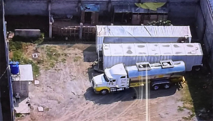 Tras realizar una inspección a los bidones se confirmó que se trataba de hidrocarburo; al interior del inmueble se halló un tractocamión acoplado con un semirremolque, así como dos contenedores de metal, por lo que de forma inmediata se aseguró el predio y su interior y se levantó la denuncia correspondiente ante la autoridad competente.