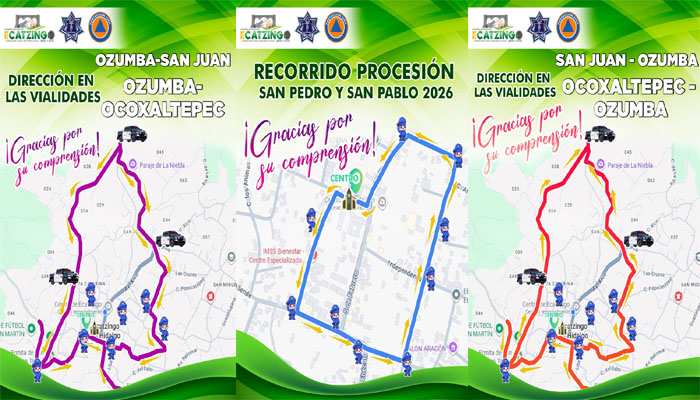 Las autoridades señalaron que permanecerán cerradas al tránsito vehicular diversas calles del primer cuadro del municipio y vialidades aledañas por donde avanzará la procesión, con cierres temporales y controlados, mismos que se irán liberando conforme concluya el recorrido.