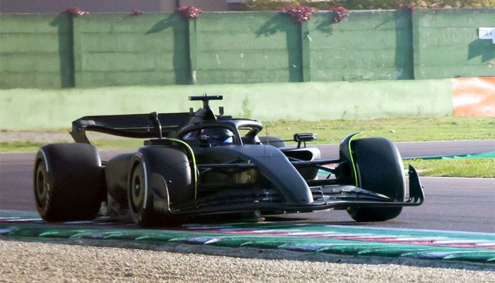 El tapatío condujo un Ferrari SF-23 completamente negro, sin logotipos ni colores oficiales, vehículo facilitado por la escudería italiana, que será proveedora de motores para Cadillac a partir de 2026.