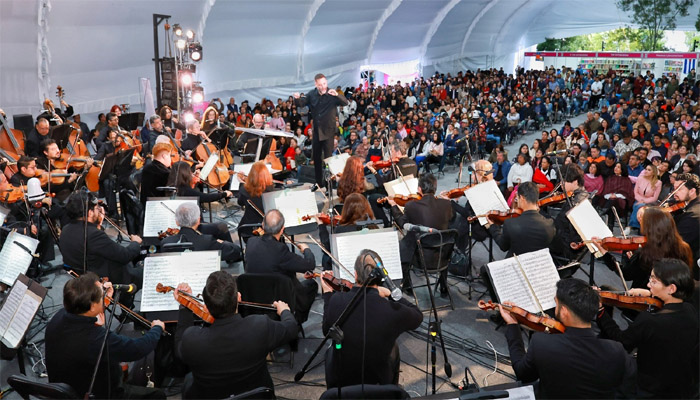 Previo al concierto de la Orquesta Sinfónica del Estado de México (OSEM), que cerró las actividades del programa de la FILEM 2025, Zarza Delgado destacó que el encuentro de conocimiento que significó la FILEM 2025 propicia que los cambios y transformaciones que benefician a la comunidad sean posibles con la cercanía y compromiso de todas y todos.