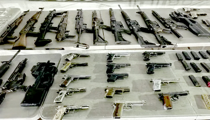 En Redes Sociales, García Harfuch confirmó que “en Culiacán, Sinaloa, con trabajos de inteligencia militar central, se identificó un inmueble utilizado como casa de seguridad para el resguardo de aproximadamente 200 armas de fuego. Entre el arsenal asegurado se encuentran ametralladoras, armas largas y cortas de diferentes calibres, lanzacohetes, ocho lanzagranadas, cargadores, cartuchos, además de dos vehículos blindados”.