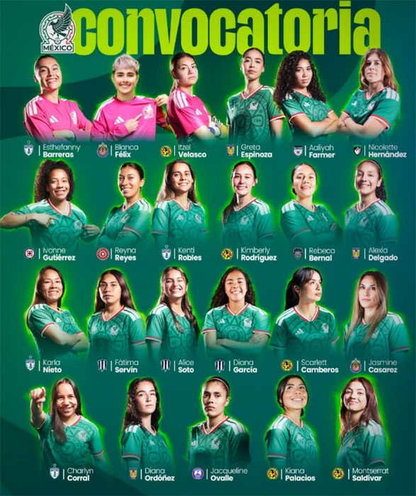 La Dirección de la Selección Nacional Femenil dio a conocer la convocatoria del entrenador, Pedro López, con la que enfrentará el duelo de eliminatoria ante Santa Lucía y el partido de preparación ante Brasil.