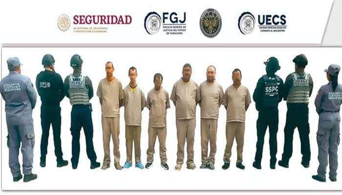 Tras lo anterior se ejecutaron órdenes de aprehensión por reclusión contra 12 personas, identificadas como César Enrique “Z”, Edgar “C”, Enrique “A”, Jesús “C”, Juan Diego “G”, Talos Luciano “T”, Felipe de Jesús “V”, Martín “M”, Medardo Ernesto “M”, Vicente “M”, Juan Francisco “R”, mientras que a Eduardo “G” se les ejecutó otra orden de aprehensión por extorsión.
