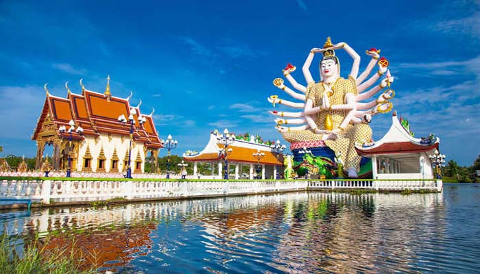 Situado en la isla turística de Koh Samui, en Tailandia, Wat Plai Laem es un templo budista dedicado a Guanyin, la diosa de la compasión y la misericordia. La característica principal del templo es la imagen de Guanyin con 18 brazos que se eleva 20 metros sobre el complejo.