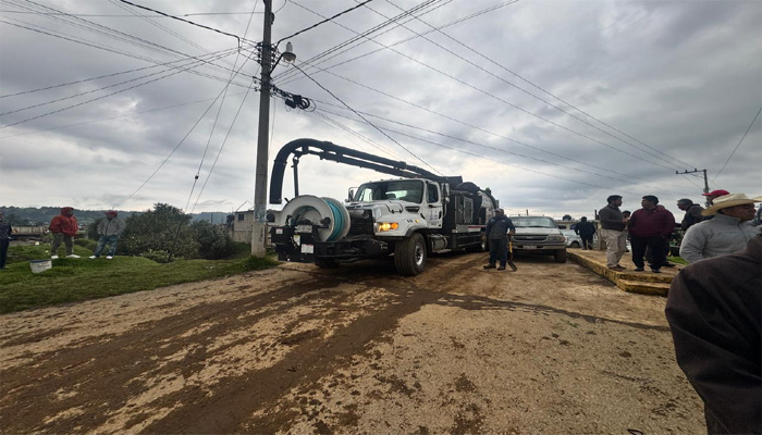 Con 40 elementos del Grupo Tláloc, tres equipos vactor, bombas de achique e hidráulicas, camiones de volteo, retroexcavadoras y pipas, se trabaja intensamente en la zona afectada, luego de que un taponamiento por acumulación de basura en el río Mazacalco provocara el desbordamiento de agua en el punto donde convergen dos canales.