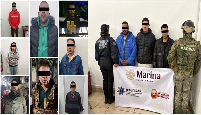 Fueron detenidos 11 sujetos en dos hechos distintos como probables responsables del delito de despojo en Ecatepec, Estado de México, quienes ingresaron a dos viviendas en las colonias Luis Donaldo Colosio y Valle de Aragón, este último inmueble que estaba asegurado por la Fiscalía y los sospechosos quebrantaron sellos.