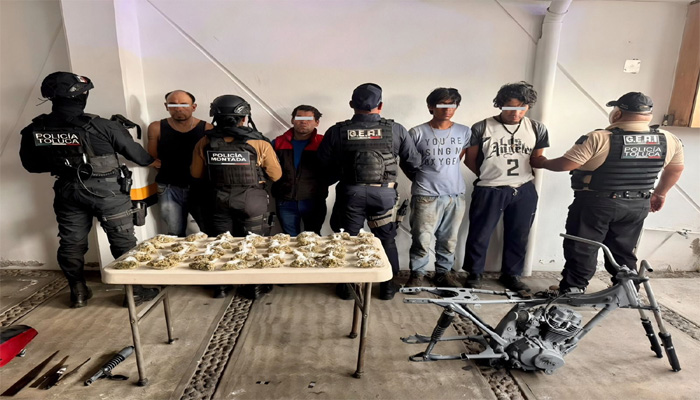 Cuatro hombres, de entre 32 y 44 años de edad, fueron detenidos por elementos de la Policía Municipal cuando desvalijaban una motocicleta en la colonia Cultural, delegación San Buenaventura.