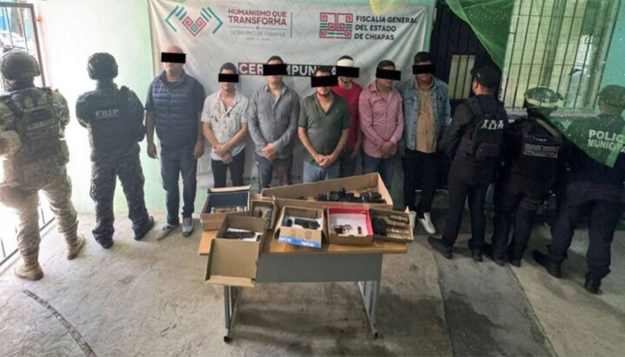 Durante un operativo interinstitucional en el centro de San Cristóbal de las Casas, fueron detenidos nueve hombres en posesión de armas de fuego y vehículos, y un policía municipal resultó lesionado, informó la Fiscalía General del Estado de Chiapas (FGE), tras una denuncia anónima.