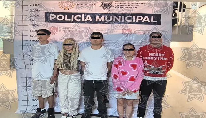 Los hechos se registraron cuando policías municipales realizaban patrullajes preventivos y, tras recibir información oportuna, los elementos implementaron de manera inmediata una estrategia operativa en el barrio Talabarteros. En el operativo efectuado el 29 de diciembre de 2025, lograron la detención de Elizabeth “N”, de 18 años de edad; Epson “N”, de 22 años; Jessica “N”, de 37 años; Edwin “N”, de 23 años, así como de un menor de edad cuya identidad se mantiene reservada.