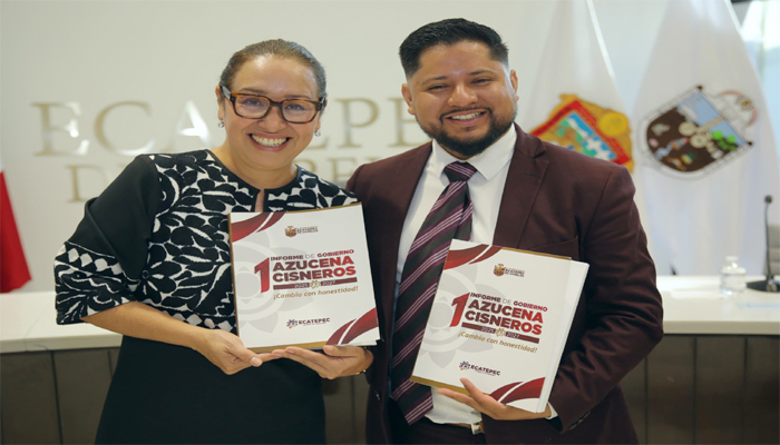 En un acto de transparencia y rendición de cuentas, la presidenta municipal de Ecatepec, Azucena Cisneros Coss, entregó en sesión solemne de Cabildo a las y los integrantes del Ayuntamiento su Primer Informe de Gobierno, en versión escrita y electrónica, donde se resumen las obras y acciones realizadas durante los primeros 12 meses de la Administración 2025-2027.