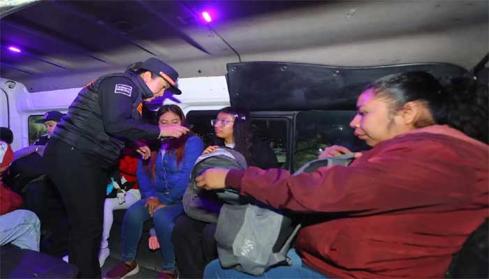 En las avenidas México y Acueducto, en Tulpetlac, la alcaldesa supervisó el filtro de revisión a unidades de transporte público, con intervención de Marina, Sedena, Guardia Nacional, policía estatal y municipal con los agrupamientos de Policía de Género, Grupo de Operaciones Especiales y Unidad Canina.