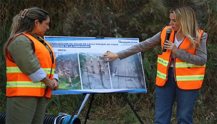 Romina Contreras subrayó que, desde 2025, el Gobierno de Huixquilucan ha invertido más de 85 de millones de pesos en la estabilización de ocho taludes los cuales se ubican en Parque Santander, en La Herradura; en la Avenida Cristóbal Colón, en el paraje La Selva, Cuarto Cuartel; en la avenida Zacamulpa Sur, en Zacamulpa; en la calle Circuito Empresarial, en el Centro Urbano San Fernando-La Herradura Magnocentro; en Vista Real, en el fraccionamiento Lomas Country Club; en la calle Parque de Cádiz, en el fraccionamiento Parques de la Herradura; en la calle Monte Himalaya, en Balcones de la Herradura y en el Boulevard Loma Real, en el fraccionamiento Bosque Real.