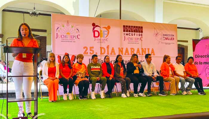 En Juchitepec, el Gobierno Municipal, en coordinación con la Dirección de la Mujer, el Sistema para el Desarrollo Integral de la Familia (DIF) y el Instituto Municipal de Cultura Física y Deporte (IMCUFIDE), llevó a cabo una serie de actividades con motivo del Día Naranja, jornada dedicada a la reflexión y a la erradicación de la violencia contra el género femenino.