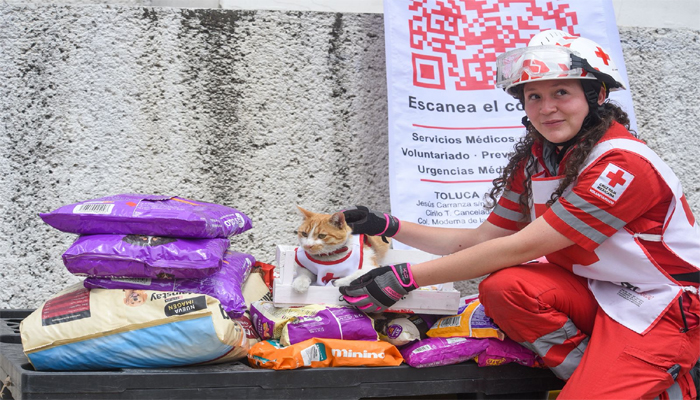 sus hijos, como una forma de fomentar en los pequeños los valores como el respeto y la protección a los perros y gatos, además de juguetes y ropa para el voluntario felino de Cruz Roja Toluca luzca siempre limpio y muy presentable.