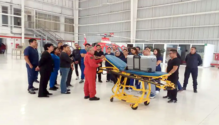 Durante esta jornada formativa, 27 profesionales —entre coordinadores del Programa Estatal de Trasplantes y médicos procuradores— recibieron instrucción teórica y práctica en materia de traslado aéreo de órganos y atención crítica durante evacuaciones aeromédicas, bajo la dirección de Víctor Figueroa Corchado, Jefe de la Unidad de Rescate Aéreo del Grupo Relámpagos.