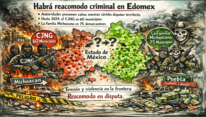 La caída de Nemesio Oseguera Cervantes, alias Nemesio Oseguera Cervantes, conocido como El Mencho, abrió un escenario incierto en el Estado de México, lejos de representar el fin de la violencia, el debilitamiento del Cártel Jalisco Nueva Generación podría detonar un reacomodo criminal que fortalezca a su principal rival en la entidad, el grupo de La Familia Michoacana, mientras el discurso oficial insiste en que no hay focos rojos.