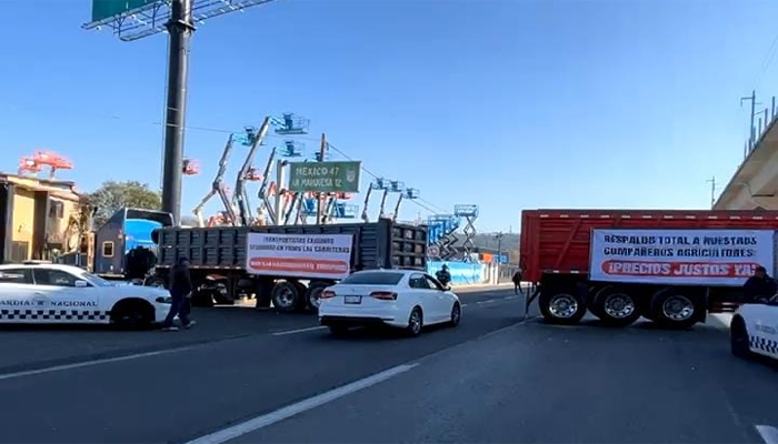 En las pesadas unidades que fueron colocadas en la vialidad se pueden observar mantas con leyendas, entre ellas, “Transportistas exigimos seguridad en las carreteras. ¡Alto a la delincuencia en el transporte!” y “Respaldo total a nuestros compañeros agricultores. ¡Precios justos, ya!”, con lo que buscan visibilizar las problemáticas que afectan a ambos sectores.