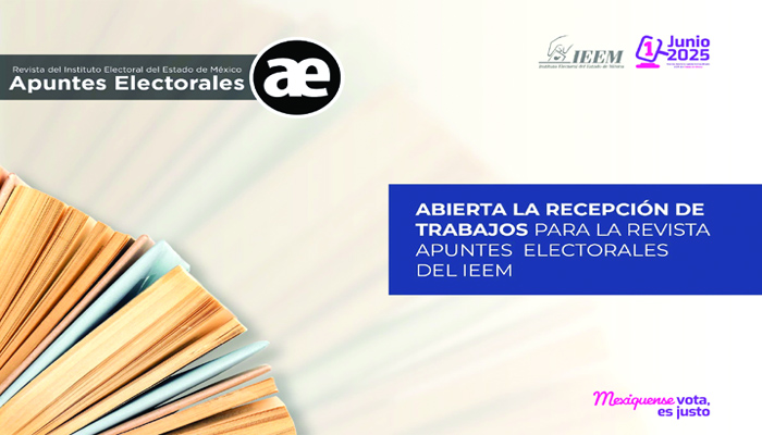 El Instituto Electoral del Estado de México (IEEM), a través de su Centro de Formación y Documentación Electoral (CFDE), invita a la comunidad académica, investigadora y especialista en temas político-electorales a participar en la convocatoria para publicar en el número 73 de la revista Apuntes Electorales. La recepción de textos estará abierta hasta el 15 de agosto de 2025, a las 23:59 horas.