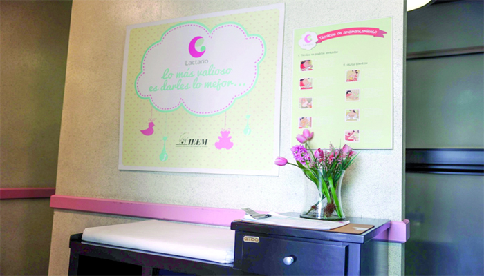 La sala de lactancia del IEEM está equipada con refrigerador, dos sillones, lavabo, mesa, esterilizador de biberones, cambiador de pañales, cesto de basura antiolores y manuales informativos sobre técnicas de amamantamiento. Además, su horario es de libre demanda, lo que permite atender las necesidades de alimentación de las infancias de forma oportuna y sin restricciones.