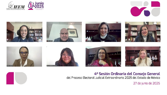 El Consejo General del Instituto Electoral del Estado de México (IEEM), llevó a cabo la cuarta Sesión Ordinaria en la cual aprobó diversos acuerdos correspondientes al Proceso Electoral Judicial Extraordinario 2025 del Estado de México.
