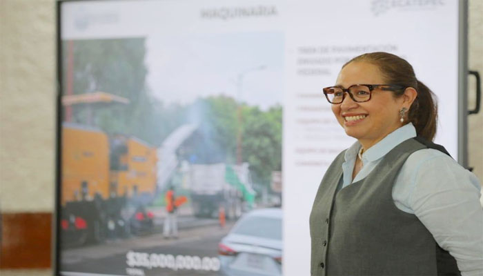 La alcaldesa Azucena Cisneros Coss aseguró que cuando inició la presente administración, hace 10 meses, encontraron 80 por ciento de calles destruidas y sin una sola pieza de maquinaria; sin embargo, en este año han recuperado 30 por ciento de las vialidades en Ecatepec. “Para entenderlo en su justa dimensión: Es como si hubiéramos pavimentado el camino completo de Ecatepec hasta la ciudad de Morelia”, dijo.
