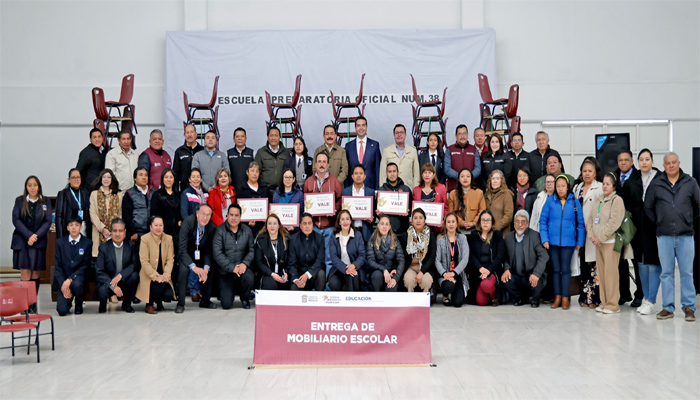 En la Preparatoria Oficial No. 38 se distribuyeron 240 sillas metálicas y mobiliario para 19 escuelas, con una inversión de 2.08 millones de pesos, en beneficio de más de 2 mil estudiantes.