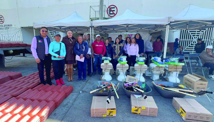 Los apoyos entregados incluyeron: plastitejas, kits de herramienta y kits de baño, tinacos y termotanques, carretillas.