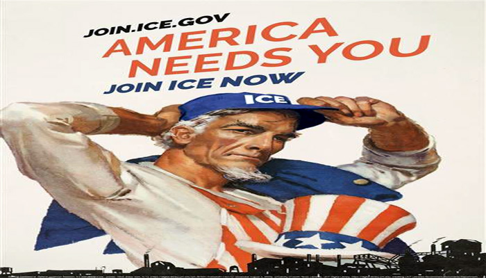 El DHS pretende reclutar a más de 10.000 agentes para el ICE para finales del año, lo que la convertiría en la agencia policial más grande del Gobierno de EE.UU. Para ello, ha recurrido a compartir diversas imágenes que reproducen la estética de los carteles de reclutamiento de la Primera y Segunda Guerra Mundial, destacando al Tío Sam como símbolo principal.