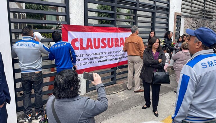 Integrantes del Sindicato de Maestros al Servicio del Estado de México (SMSEM) de la región Ecatepec clausuraron de manera simbólica las oficinas centrales del organismo en Toluca, en protesta por lo que señalaron como omisiones en la defensa de sus derechos laborales, ausencia de incrementos salariales justos y falta de programas de vivienda.