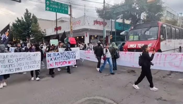 Activistas y estudiantes marcharon este día para conmemorar el onceavo aniversario de la desaparición forzada de los 43 estudiantes de la Normal Rural “Raúl Isidro Burgos” de Ayotzinapa, ocurrida en Iguala, Guerrero, la madrugada del 26 de septiembre de 2014.