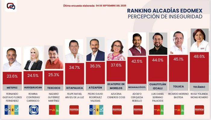 De acuerdo con el estudio de Massive Caller, Metepec se ubicó en el primer lugar estatal con la menor percepción de inseguridad entre sus habitantes, superando a municipios de gran densidad poblacional y con retos más complejos en materia de seguridad.
