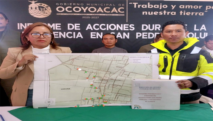 Tras afirmar que “San Pedro Cholula nunca estuvo solo”, la Presidenta Municipal de Ocoyoacac Nancy Valdez Ruiz, rindió un Informe de las Acciones emprendidas para atender la emergencia en la Contingencia provocada por las intensas lluvias que azotaron a la comunidad de San Pedro Cholula, El Potrero, El llano del Compromiso y El Llanito, lugares donde más de 26 calles estuvieron bajo el agua, afectando más de 900 viviendas y dejando a tres mil personas damnificadas.