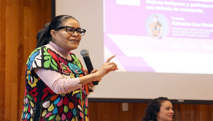 La ponente señaló que a lo largo de su trayectoria ha luchado por el reconocimiento de los derechos de las mujeres y de los pueblos originarios. Recordó que su historia cobró fuerza cuando en 2007, por ser mujer, le fue negado el triunfo como presidenta de su municipio, Santa María Quiegolani, Oaxaca, hecho que visibilizó la exclusión política que enfrentaban las mujeres indígenas. Esa experiencia, explicó, marcó el inicio de su activismo por la igualdad y la justicia.