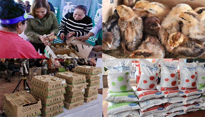 La funcionaria municipal, detallo que se entregaron aproximadamente 100 paquetes de pollos doble propósito, además de 15 paquetes de alimento acuícola para trucha y carpa, así como se hizo una donación de bolsas inoculadas para la producción de hongo seta al CBT “Profesor Luis Camarena González”.