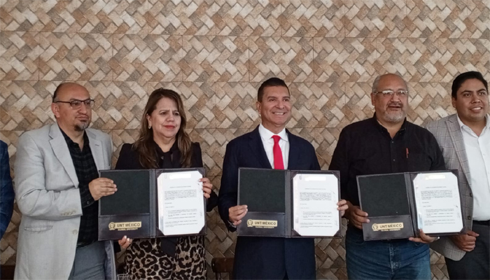 Toluca, Méx.- Con el propósito de elevar la profesionalización del gremio periodístico y facilitar el acceso a estudios superiores, la UNT México Global University y el Comité Promotor para la Protección de Periodistas en el Estado de México firmaron un convenio que permitirá a reporteros, camarógrafos, fotógrafos, comunicadores y trabajadores de medios cursar licenciaturas, maestrías y doctorados con becas especiales y modalidades de estudio flexibles.