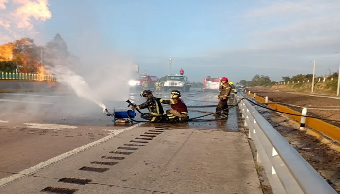 Continúa el cierre en ambas direcciones, para seguridad de los automovilistas, hasta que sean controladas las llamas y el combustible que quedó esparcido en las vialidades; se recomienda tomar vialidades alternas, hasta el momento se desconoce el estado de salud del operador de la pipa.