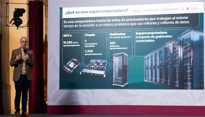 Dijo que esta máquina, tendrá un procesamiento de 14 mil 480 GPU, una capacidad de 314 mil billones de operaciones por segundo con una inversión pública de 6 mil millones de pesos, “que esperamos amortizar muy rápido por la utilidad que nos va a redituar”, señaló Peña Merino.