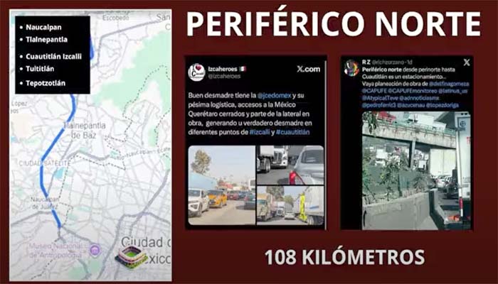 De acuerdo con la dirigente priista, el repentino impulso a diversas vialidades no responde a las necesidades cotidianas de las y los mexiquenses, sino a la intención de mejorar las rutas de conexión entre aeropuertos, zonas de alta plusvalía y el Estadio Azteca, de cara al evento internacional. Entre las obras mencionadas destacan la rehabilitación del Periférico Norte, el Periférico Oriente en Nezahualcóyotl, la Avenida Central y el bulevar Aeropuerto en Toluca.