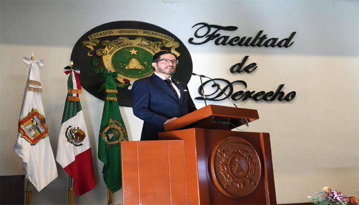 Ante la rectora de la UAEMéx, Martha Patricia Zarza Delgado, alumnado e integrantes de la comunidad universitaria, aseguró que “como egresado de la Facultad de Derecho es un honor aportar la perspectiva de los derechos humanos a este proceso de reforma de ley, además, tengo el privilegio de formar parte de esta comunidad verde y oro como docente de la asignatura de Medios Alternos de Solución de Conflictos, con lo que reafirmo que enseñar también es aprender y que el diálogo, la empatía y la razón son los puentes más sólidos para construir una convivencia pacífica, inclusiva y justa”.