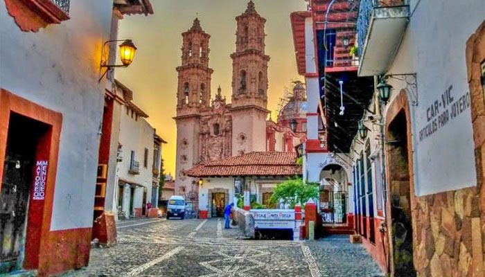 Taxco es una ciudad del estado de Guerrero, al suroeste de Ciudad de México. Es famosa por la producción de joyas de plata y la arquitectura colonial española. La Plaza Borda es su plaza principal y alberga la icónica Iglesia de Santa Prisca, del siglo XVIII y de color rosa con un elaborado estilo churrigueresco. Cerca, está el centro cultural Casa Borda, que exhibe obras de artistas locales y es sede de eventos de música y teatro.