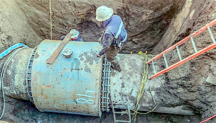 La Comisión estatal avanza en la atención de 14 fugas en la línea de conducción estatal de 48 pulgadas diámetro en tubería de concreto reforzado. Entre los trabajos de rehabilitación está la instalación de piezas tipo especial, cápsula denominada tipo concha a base de tubería de acero fabricada a la medida, ajuste de tornillería y pruebas necesarias de funcionamiento, así como relleno de excavación y reposición de pavimentos o concretos.