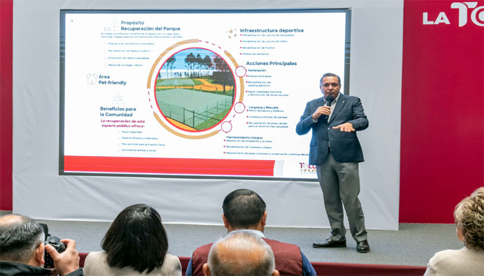 En su ya tradicional conferencia “La Toluqueña”, el edil explicó que la intervención se realizará con financiamiento federal proveniente de la Secretaría de Desarrollo Agrario, Territorial y Urbano (SEDATU) y contempla una modernización completa del parque, y entre las obras previstas se encuentran la construcción de una cancha de futbol siete, otra de basquetbol, la reubicación de los frontones y el mejoramiento de las áreas verdes.