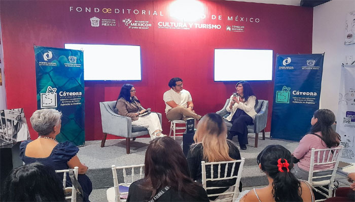 El autor estuvo acompañado por la actriz Luisa Huertas y el académico de la Universidad Nacional Autónoma de México, Javier Cuétara Priede, bajo la moderación de Ixchel E. Díaz Porras, encargada del despacho de la Dirección de Publicaciones Universitarias de la UAEMéx.