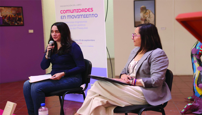 Tras demostrar que la participación se sostiene en prácticas colectivas, transmitidas desde la infancia y reforzadas en las asambleas comunitarias, las fiestas patronales, los cargos y el trabajo colectivo; la socióloga e investigadora Brenda Paola Duarte Rivera, presento su libro “Comunidades en movimiento, Experiencias migratorias y participación política en el Valle del Mezquita”, abordando preguntas como ¿Por qué las personas participan en política, incluso sacrificando tiempo, recursos y estando lejos de su lugar de origen?.